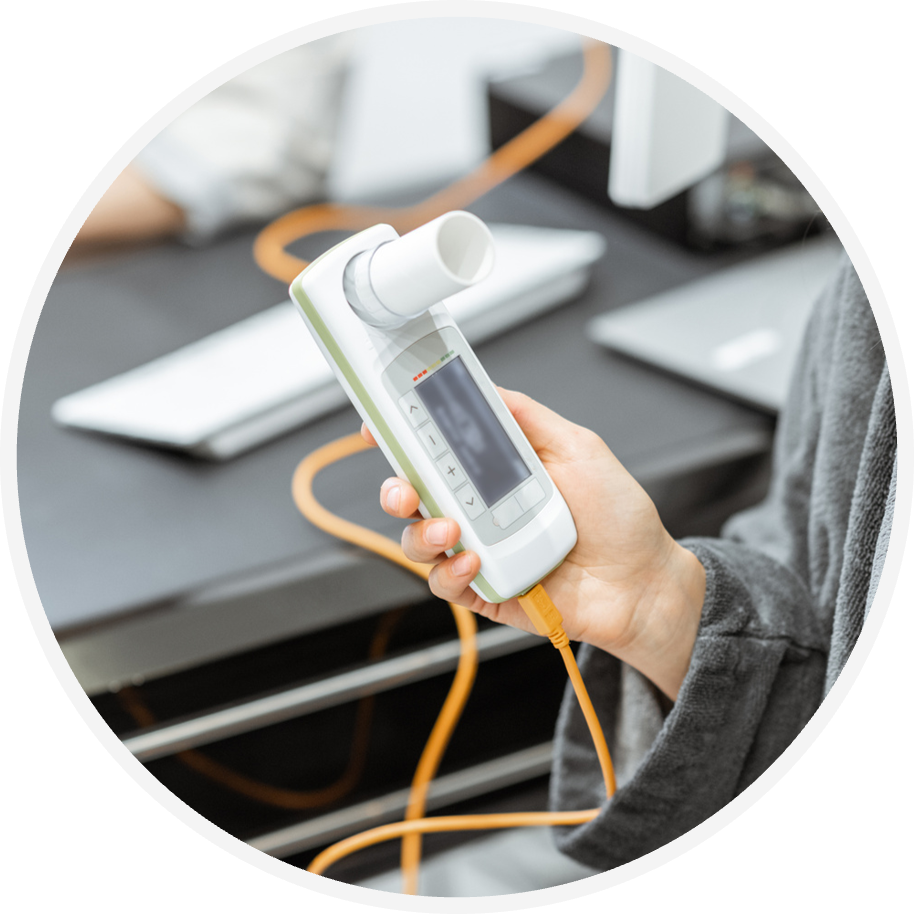 Medimos el aire que pueden retener tus pulmones junto con la velocidad de inhalación y exhalación.